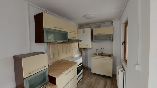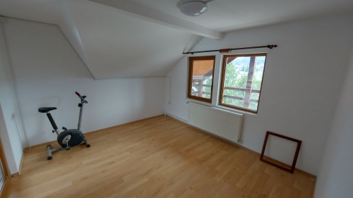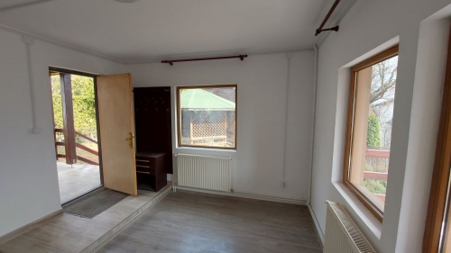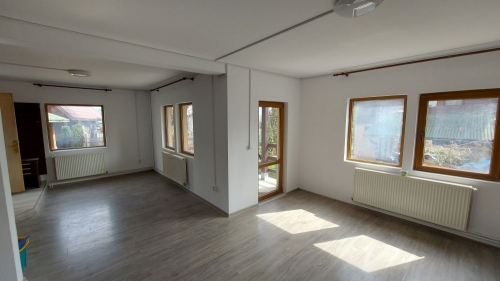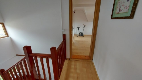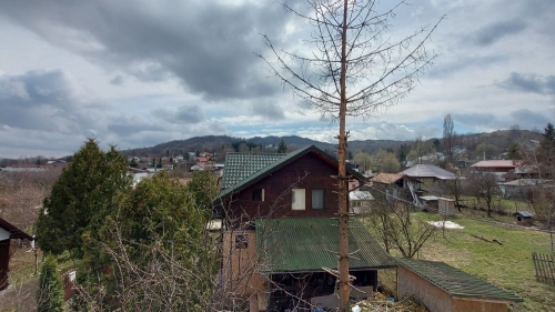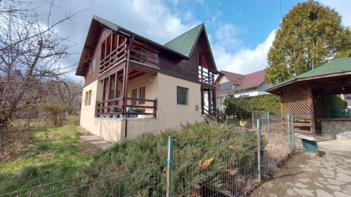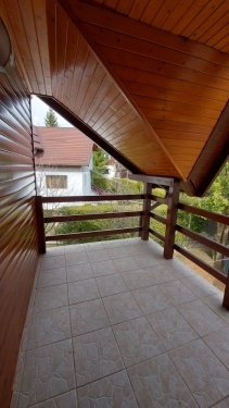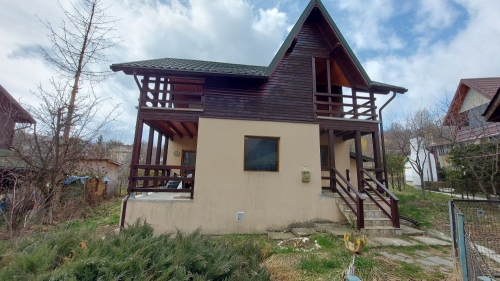 Proprietatea este amplasata intr-un cartier de sapte case, situat in zona semicentrala a orasului (cca 1,5 km de piata si magazine), in apropierea clubului de golf. Constructie 2002 pe structura de lemn, cu fundatie de beton armat si cu invelitoare de tigla metalica. Pe exterior, parterul este izolat cu polistiren cu grosimea de 5 cm iar etajul este placat cu lambriu semirotund. La interior, peretii sunt placati cu gipscarton si au izolatie de vata minerala de 10 cm. Suprafata construita desfasurata = 144 mp. Suprafata utila totala = 122 mp. Amprenta la sol = 77 mp. Compartimentare: Parter: living, bucatarie + dining, baie, 2 terase. Etaj: 2 dormitoare, fiecare cu baie proprie, 2 terase. Finisaje: gresie, parchet, faianta, tamplarie pvc cu geam termopan. Utilitati: apa - canal, gaze(centrala termica), electricitate. Suprafata totala a terenului este de 332 mp (curte 260 mp + 72 mp indiviz din 503 mp, reprezentand cota de 1/7 din drumul de acces, parcare auto si aleea pietonala). Pret: 107.000 euro